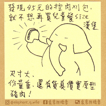 近日象發現控肉刈包這種東西,覺得蠻大一個又有份量,性價比海放所有漢堡!之後想吃漢堡應該都會去買刈包替代了。近年漢堡都變成兒童餐尺寸,光大小刈包就大上漢堡一圈,而且裡面就是一塊貨真價實的原型肉,如果榨菜可以用其他非醃製的蔬菜就更棒了(小黃瓜會弄濕刈包嗎?)。當然漢堡有其製作流程和用餐場地等其他價值,只是尺寸誇張縮水。另外一般早餐漲價也是驚人,讓連鎖漢堡店也成為同樣價位的早餐選項了......