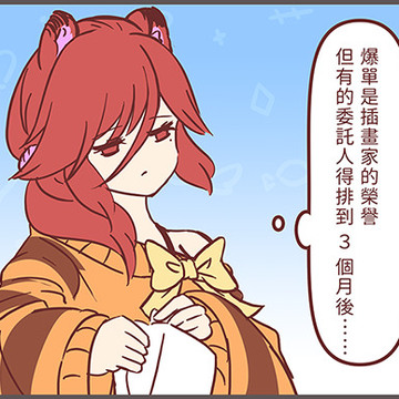 接案前,對接案的想像是每個案子都輕鬆畫,用個3小時來撇,但實際接的時候,會覺得「不能比之前畫的還差,這樣有失顏面」結果每一次都拼上全力,反而在畫紅妻的時候才輕鬆畫,再怎麼說,每一次的委託費,都是委託人存下來的錢,應該用等價的心情去繪製。要說不累嗎?肯定是累的~但我累得值得,比起在公司製造垃圾領著高薪,做為接案插畫家實在多了,我可是在製造寶物~~