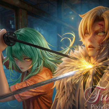 之前的委託圖,想表現出刀光劍影,千鈞一髮的感覺
