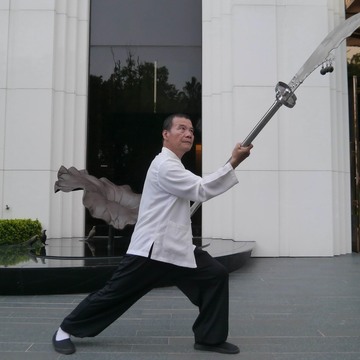 三十來歲舞起十六斤(9.6公斤)的大刀,活蹦亂跳像是舞著的只是一般棍子舉重若輕也不受離心力影響