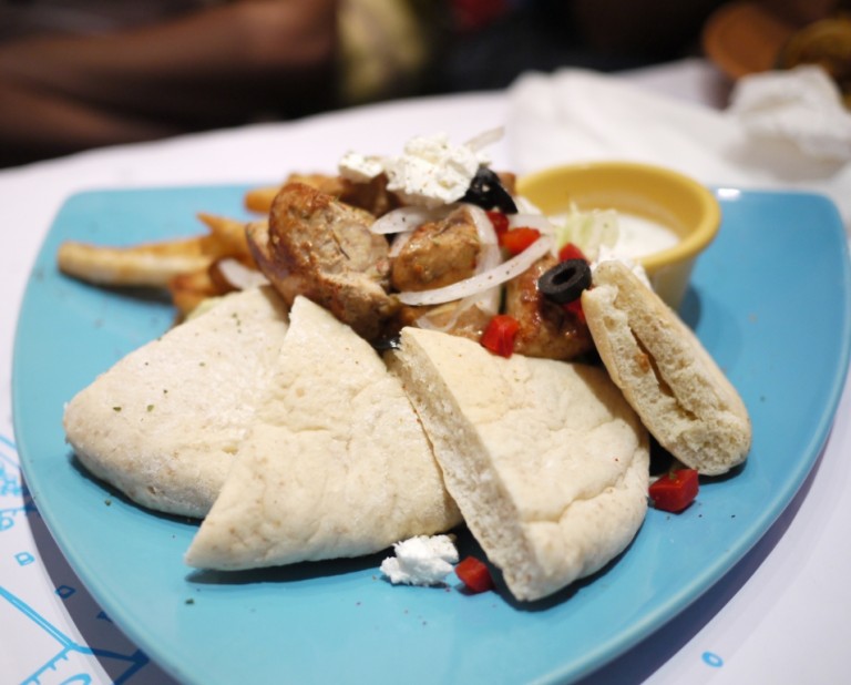 主菜--招牌雞肉斯布拉基 Chicken Souvlaki (份量很足夠,吃到最後彷彿是參加大胃王比賽...)