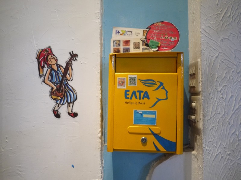 這是在店裡走廊旁設置的希臘郵箱,可幫忙代寄明信片喔