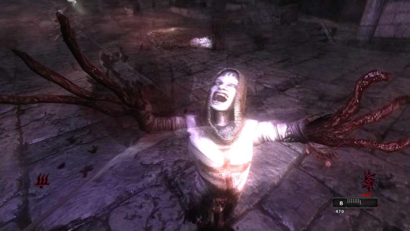 要將符咒打掉它才會死亡,最後某一隻大隻的有道符咒需要使用武士刀女跳上去砍爆。