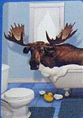 ( 哇~你家有新客廳了!! ) ( 喔~看來這頭麋鹿很喜歡你家的浴缸喔~ )