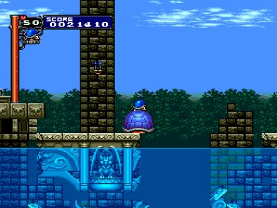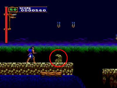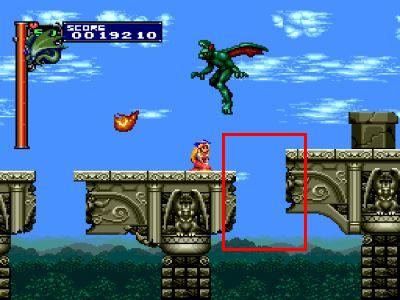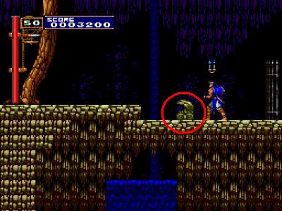 在第4'關,第2區域開始的位置處,有一青蛙石像,攻擊之