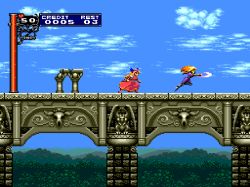 本作的里希達接近早期的惡魔城的角色操縱方式,只能一段跳躍、不能滑踢、沒有體技