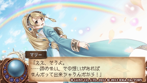 實際玩起來後才發現在煉金術士瑪莉與艾莉中有的素材收集與冒險系統全被拔除,只剩下煉金系統。但這煉金系統的配方都不需要自己去嘗試,閉著眼睛就成功了。同期間一同進行遊戲的友人S曾說:「感覺被小看了哪。」不過真正說起來也是因為自己誤會了,遊戲介紹在分類上明明就寫著AVG,卻因此認為這遊戲不值得推薦未免也太過分了? 所以我還是有乖乖地把這款遊戲玩下去喔。