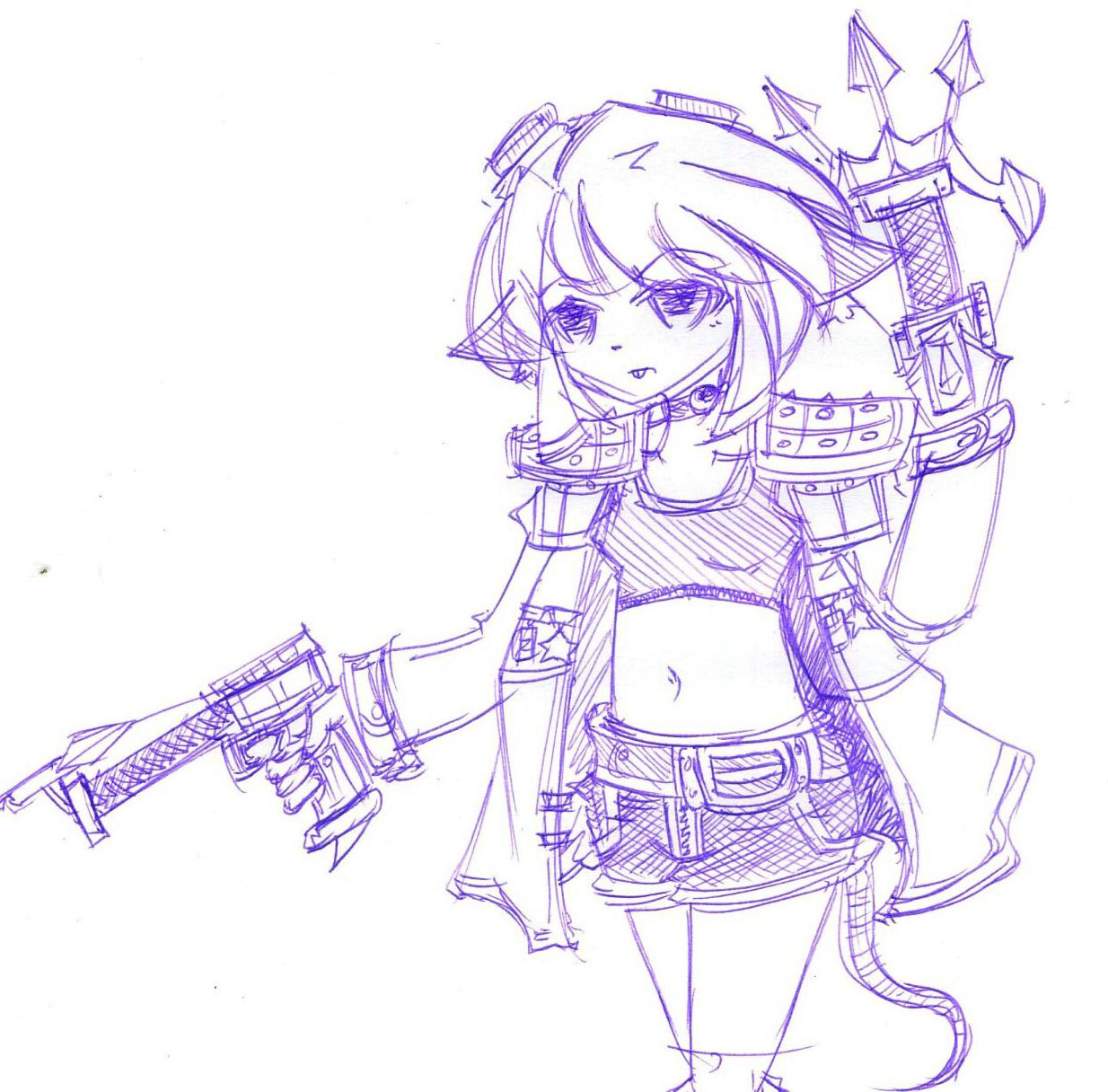 一開始其實構想挺簡單的 就是尾行+獸耳+大門牙的女孩子