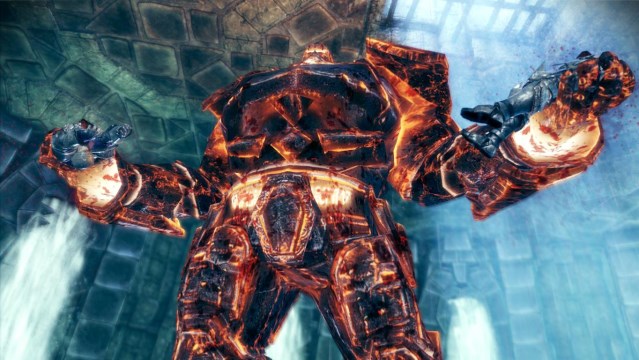 地獄魁儡(Inferno golem)一出場就把魔人給折成兩半。