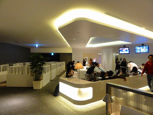 裡面除了跟一般的貴賓室一樣,有大廳有商務中心,有餐飲吧外,角落另外有準備各人隔間,有著舒適的沙發,進去往上面一躺就可以優閒的用餐休息等登機了。