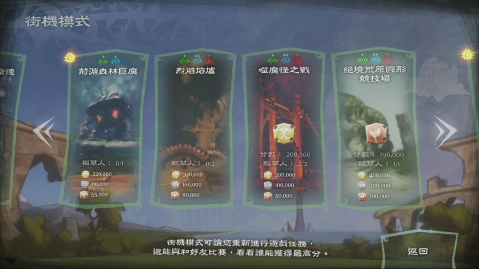 在每完成一段遊戲之後,就能開啟該段遊戲的街機模式。在街機模式當中,遊戲會幫你把劇情以及解謎的部分拉掉,再將剩下的部分拼成完整的戰鬥段落,玩起來真的就如光線槍街機一樣,可以挑戰自己的最高連段或是分數,提供除了本傳以外的另一種玩法。