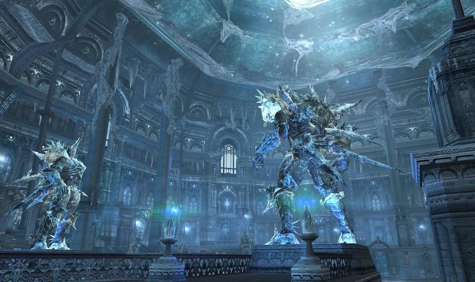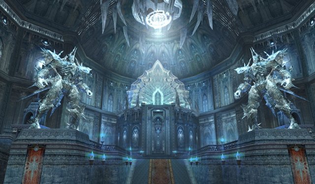 王座本身是由藍色的魔石和寶石構築,整體來說有著冰宮般的錯覺。