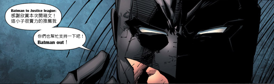 至於關於蝙蝠俠的事蹟,其實不用我講各位也很清楚吧!高譚市最富有的偉恩企業擁有人布魯斯‧偉恩就是他啦!在DC英雄世界裡,蝙蝠俠不像超人有飛行能力,也不像神力女超人擁有天神的保護,更不要說綠燈俠的造型變幻和閃電俠的速度。那為何他卻可以堅強他的地位,甚至被人排在和超人、神力女超人在一起並合稱三巨頭呢?這是因為每位英雄雖各自有不同能力,但卻沒有像蝙蝠俠一樣能夠迅速分析整個情勢,也因為他本身就是個偵探,對事物所有的敏感度比任何人都要來得高。