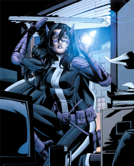 尖銳突起眼罩讓人聯想她和蝙蝠俠家族的關係,儘管在故事中她都屬於比較單獨行動的英雄角色,但還是讓壞人認為她和蝙蝠俠關係匪淺。
