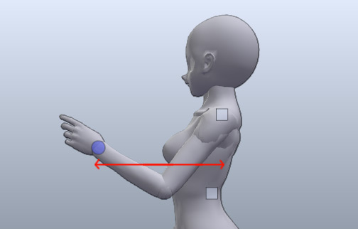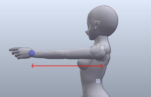 當控制點到肩膀直線距離大於或等於手臂長度時手就會伸直