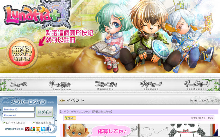 點選"無料會員登錄"那個紅色圓型按鈕~