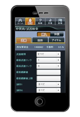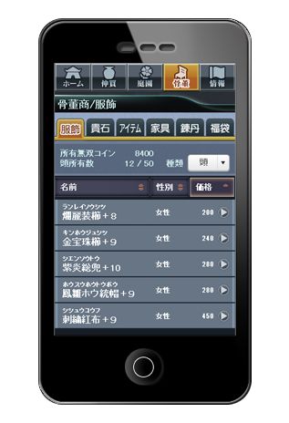 ■登入就能利用「仲介商」「骨董商」!在「家」畫面除了能確認「無雙盤」「三擇無雙」「在線手冊」以外、「仲介商」的利用、「My庭園」的照料、「骨董商」的利用,自角色的所有道具情報的確認,可以從各自的按鈕來利用。