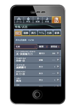 從智慧型手機和PC的WEB瀏覽器登入,除了能實行遊戲內指令「情報」「仲介商」「骨董」「庭園」以外,向「無雙盤」蓋印章、能玩1天1次可領取道具的專用內容「三擇無雙」。