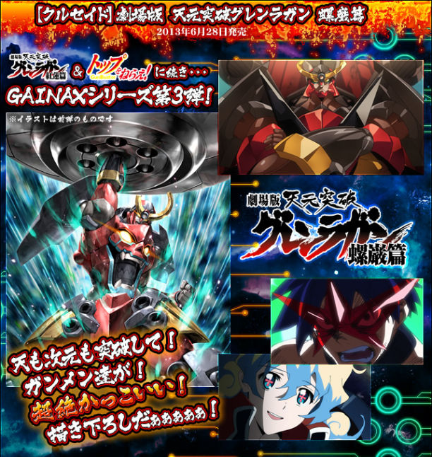 GAINAX系列作品參戰的第一部作品 天元突破グレンラガン於2012年正式參戰CRUSADE系列,GAINAX系列作品參戰第二部為トップをねらえ!/トップをねらえ2!(剛巴斯達)下一篇再來介紹。