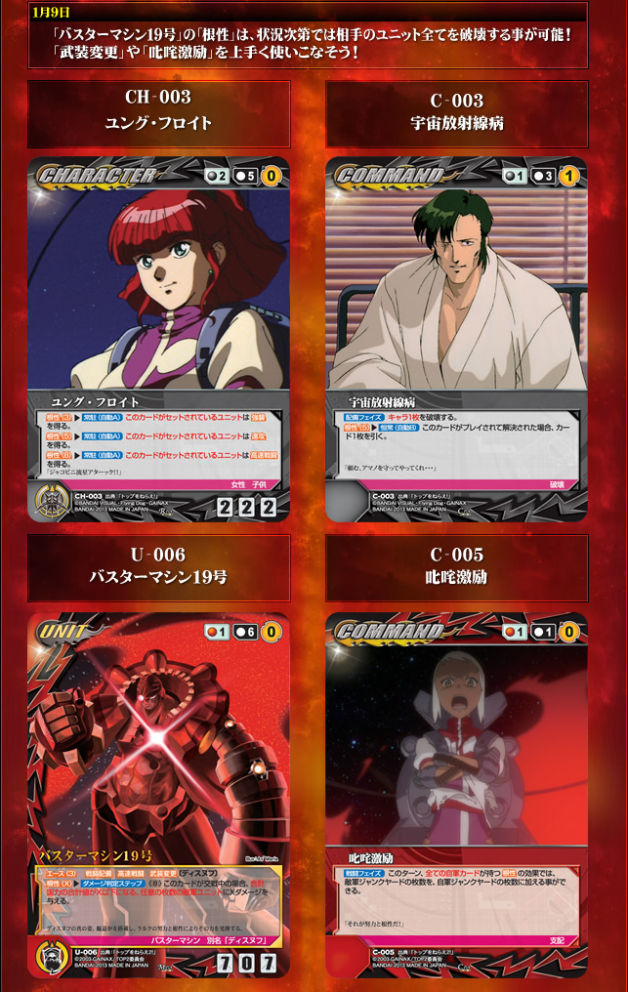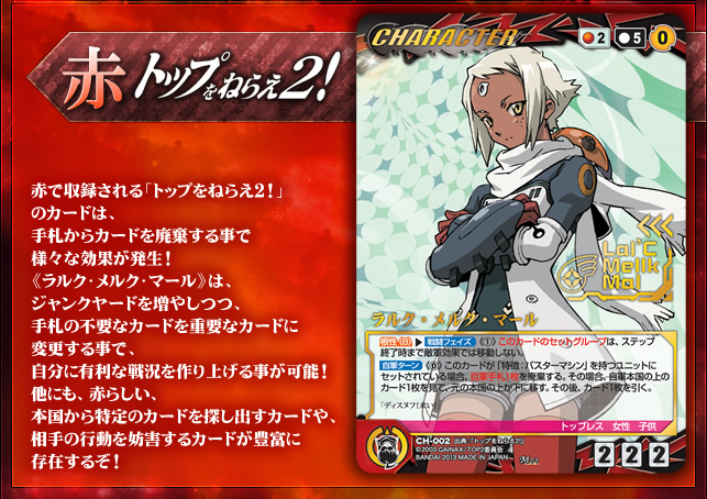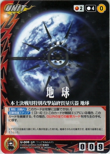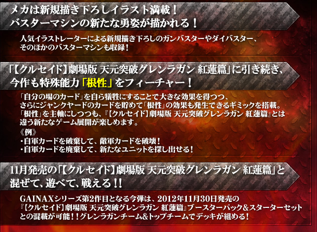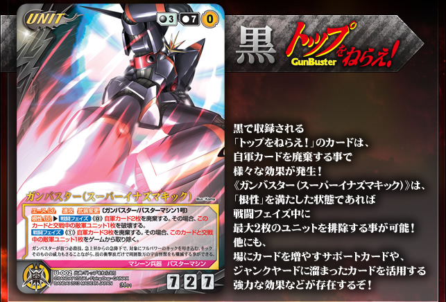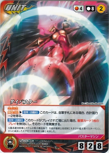 接續天元突破グレンラガン之後的第二套GAINAX參戰作品,特殊效果一樣沿用[根性],強化使用<<例>>自軍卡片破棄,敵軍卡片破壞!