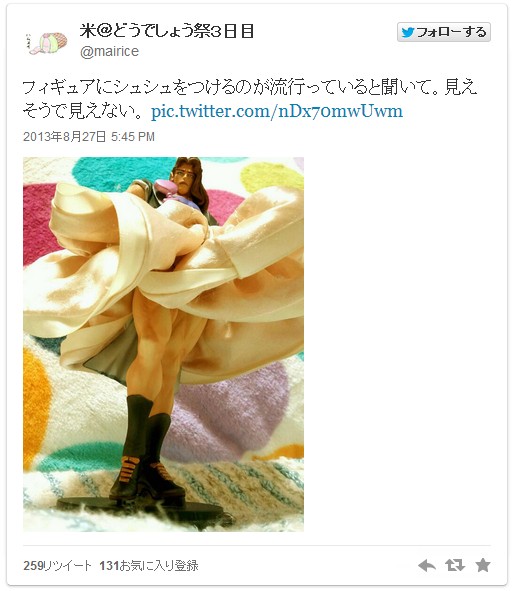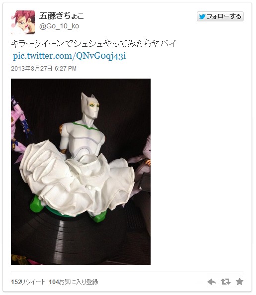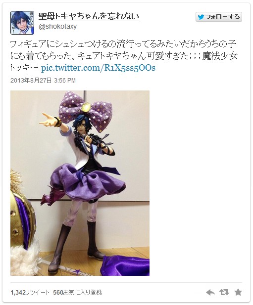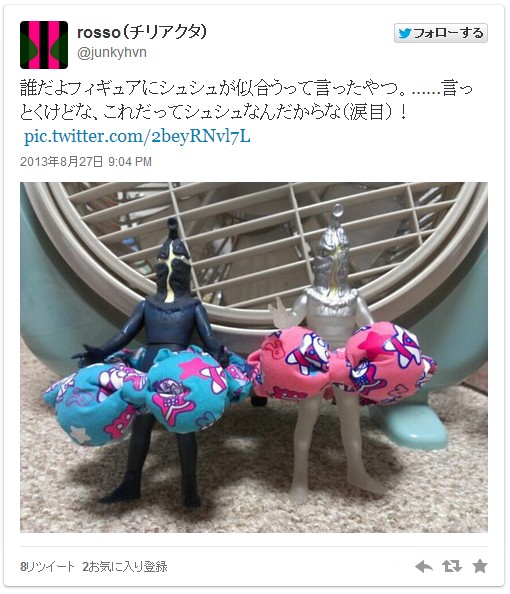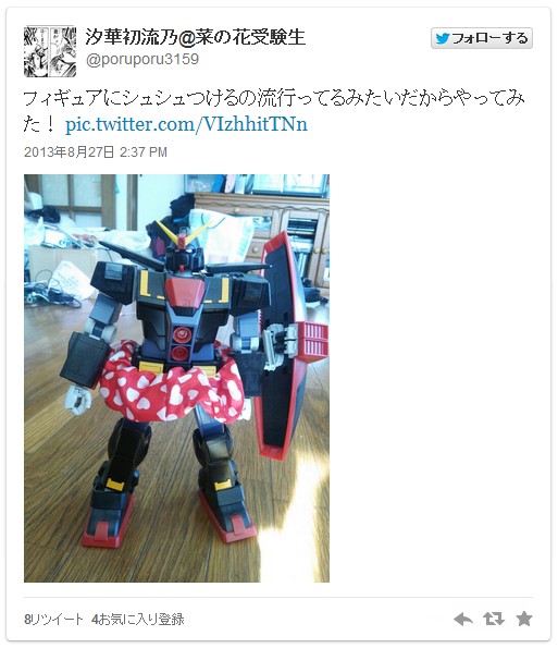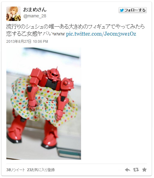 那最近就有日本人突發奇想,不知怎麼的把這玩意兒套到了自家的帥氣模型上,於是呼,這大腸圈就成了模型的最潮款配件!
