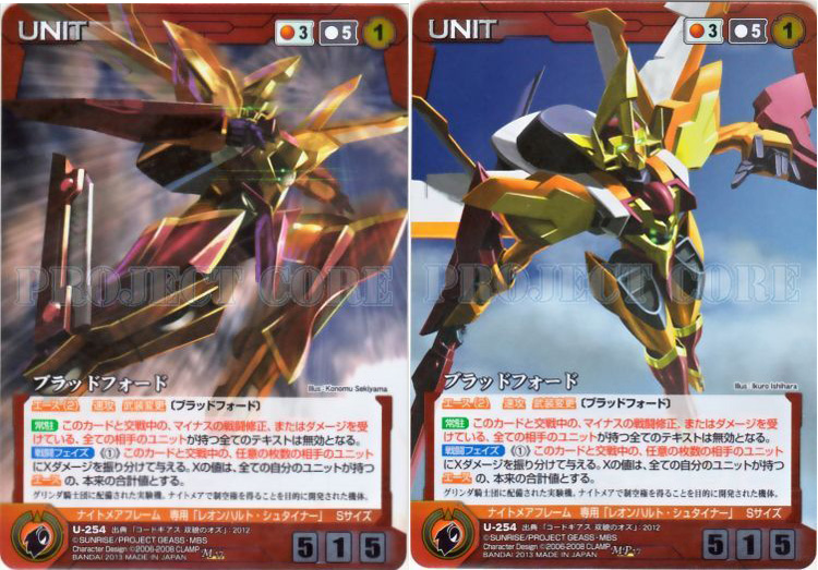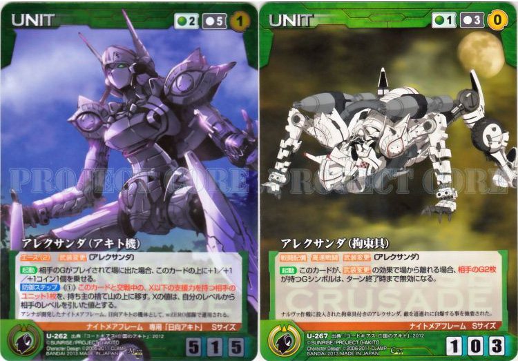 從機體效果就可以看到,每隻效果都是在自軍本國10張以下時發揮強大效果內文,手牌為0時人物也會發揮強大的效果,每隻機體也因為武裝變更名稱關係,可以互相交換武裝變更。