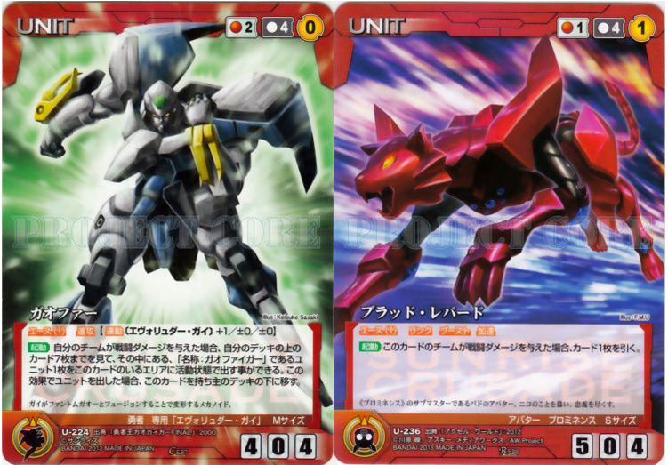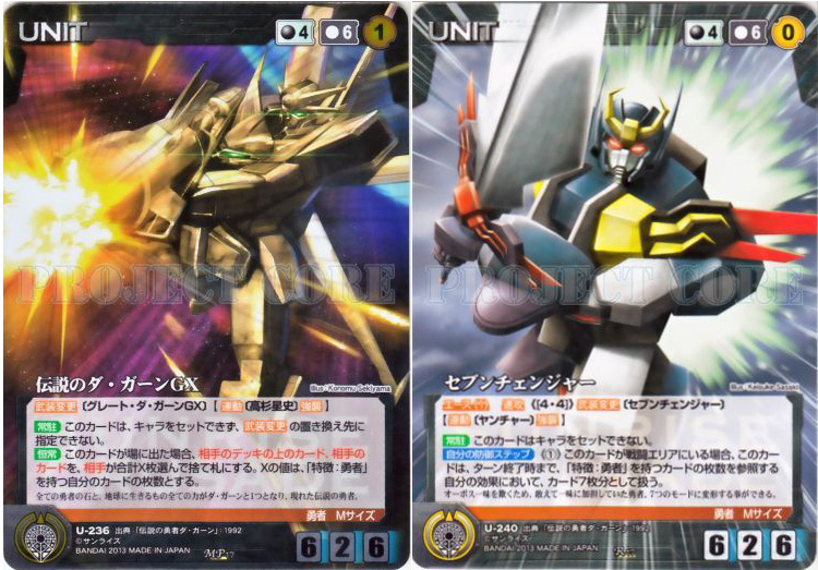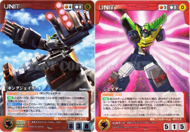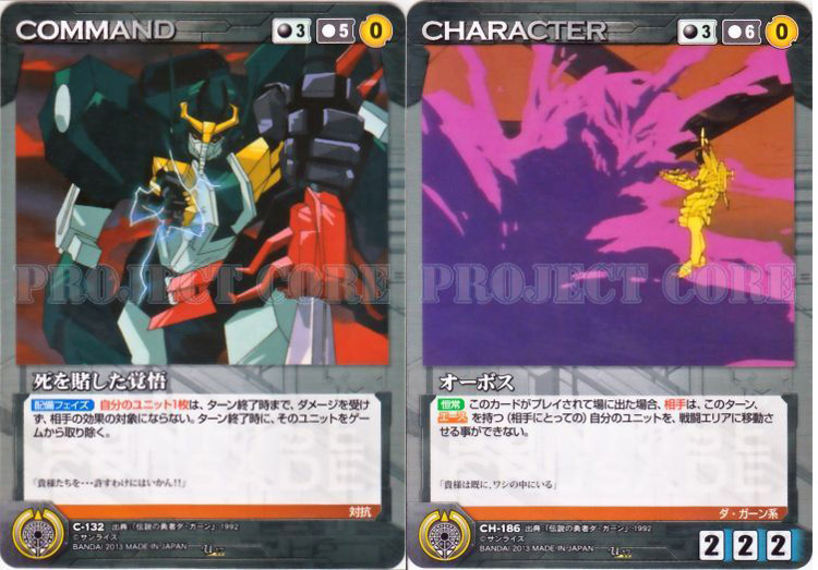 防禦階段 (1) 這張卡片在配置「出典作品」是「勇者王ガオガイガーFINAL」人物的場合,這張卡片交戰中的敵軍機體一枚捨棄。
