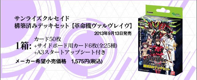 革命機ヴァルヴレイヴ,作品全機收錄、人物也是全部收錄,可以期待動畫第二季繼續強化推出該作品,機體卡圖也是全部重新繪製過。
