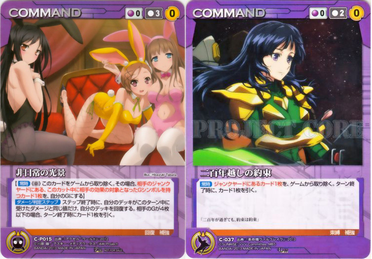 常時 (0) 自軍捨山上的卡片一枚捨棄。這個場合,敵軍的機體一枚持有的速攻,回合終了前無效。