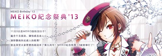 今年11月5日是VOCALOID虛擬女歌手MEIKO的生日,KARENT音樂公司為迎接MEIKO誕生第 9 周年的到來,特別推出了「MEIKO記念祭典'13」特集;這是由「月色懸想」、「凛の花」、「 Sharing Voice」、「Truth and Lie」、「 SILVER RAIN 」等五張專輯所組合而成的紀念特集。「MEIKO記念祭典'13」音樂專輯將於11 月 5 日開始配信,詳情請參閱KARENT官網。