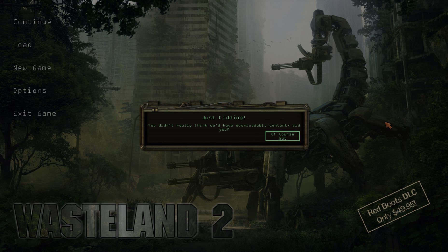 遊戲含有許多幽默笑話跟梗..如開始介面就有昂貴的DLC,點下去才知是騙人的..來諷刺現今愛把內容拆出來賣