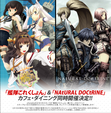 ufotable近日在官網宣布一項消息,他們即將開辦人氣網頁遊戲『艦隊これくしょん』與SPRG新作遊戲『NATURAL DOCTRINE』的聯名主題餐廳 -