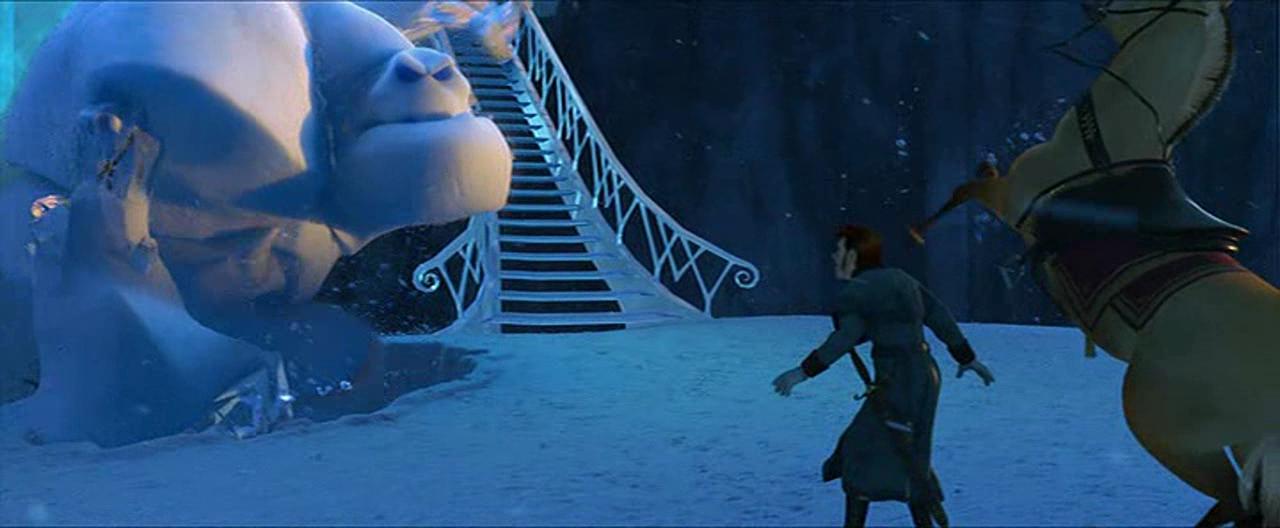 漢斯他們來到了冰宮.卻遇到了已被激怒的棉花糖(安娜做的好事~)