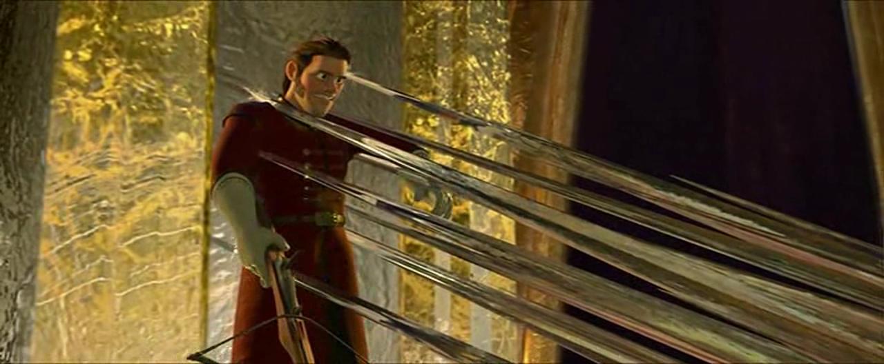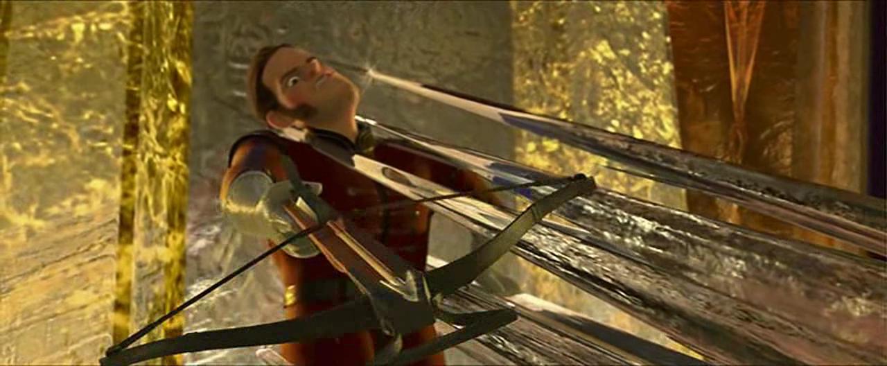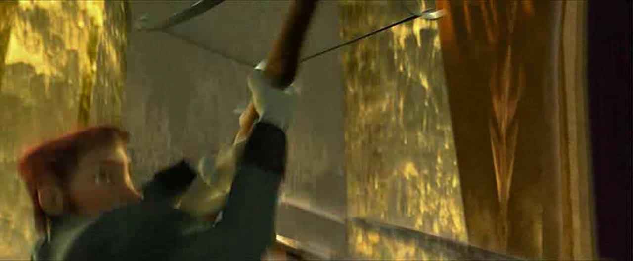 而此時刺客之一想偷襲艾莎.卻被漢斯巧妙的改成射向吊燈