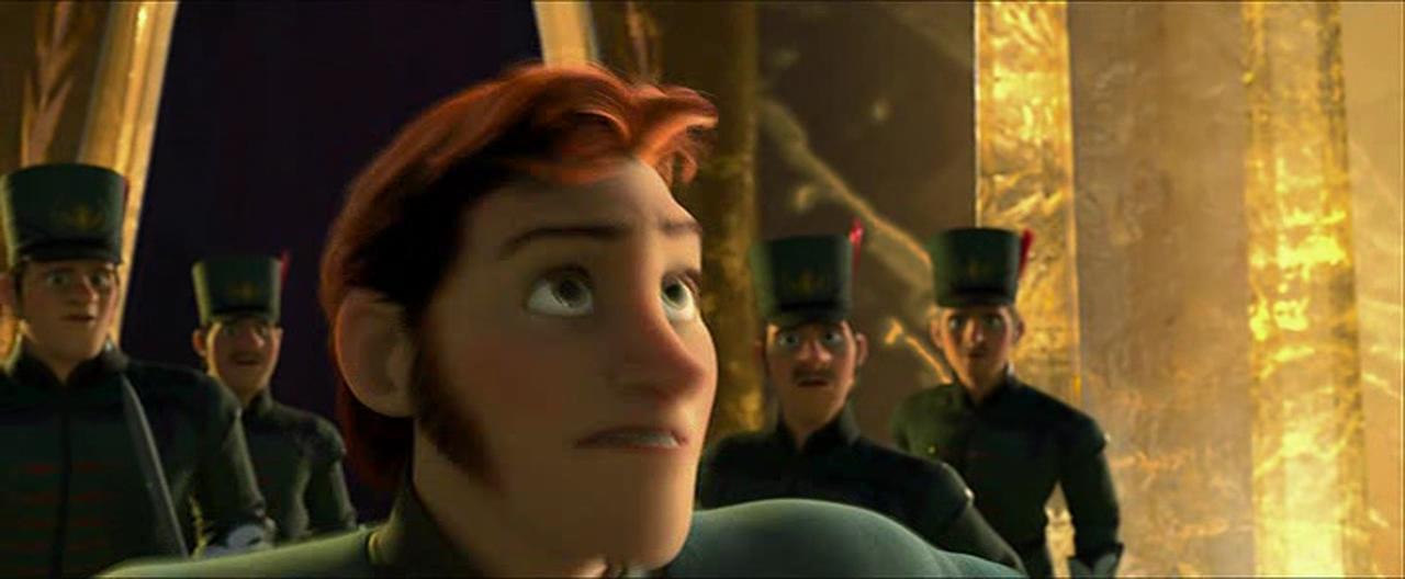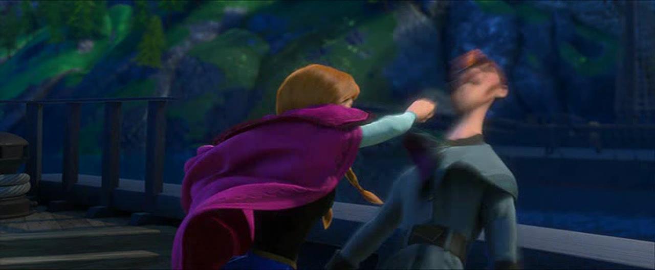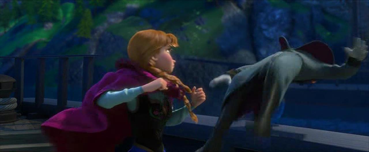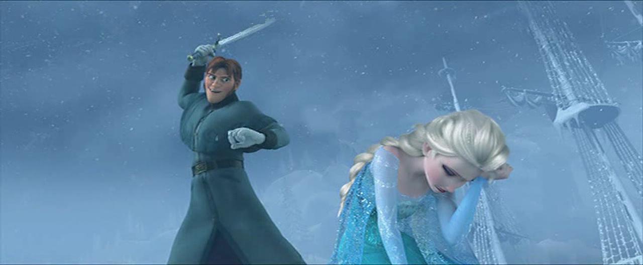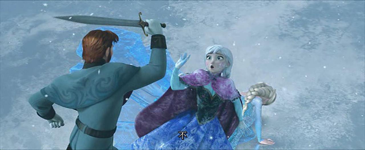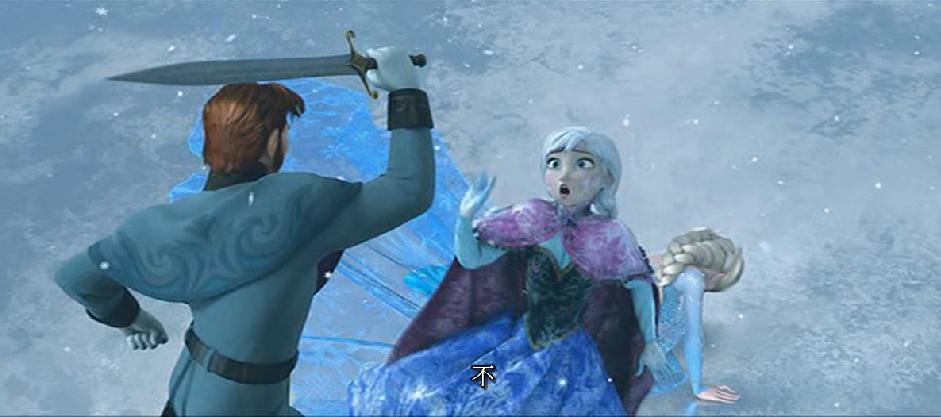 但他沒注意到此時安娜會出現幫艾莎擋劍