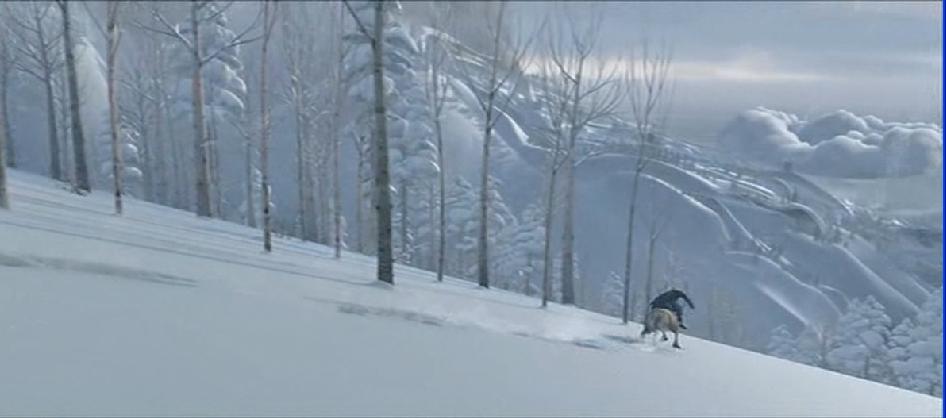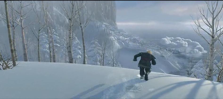 在逃離棉花糖的追趕後.阿克他們掉落在積雪的山谷