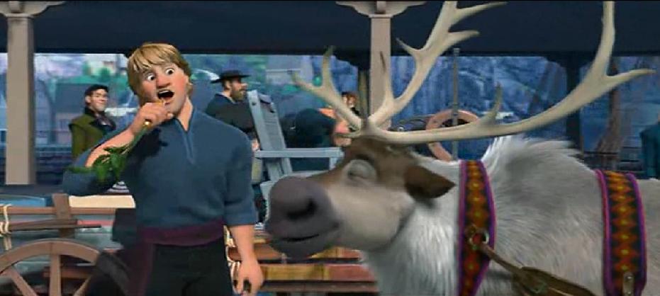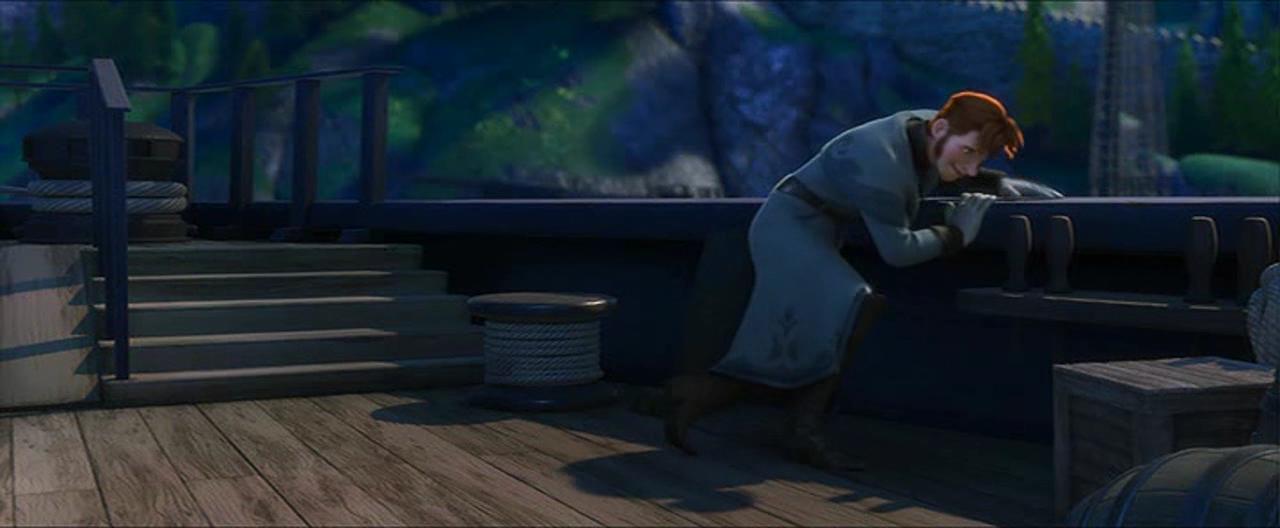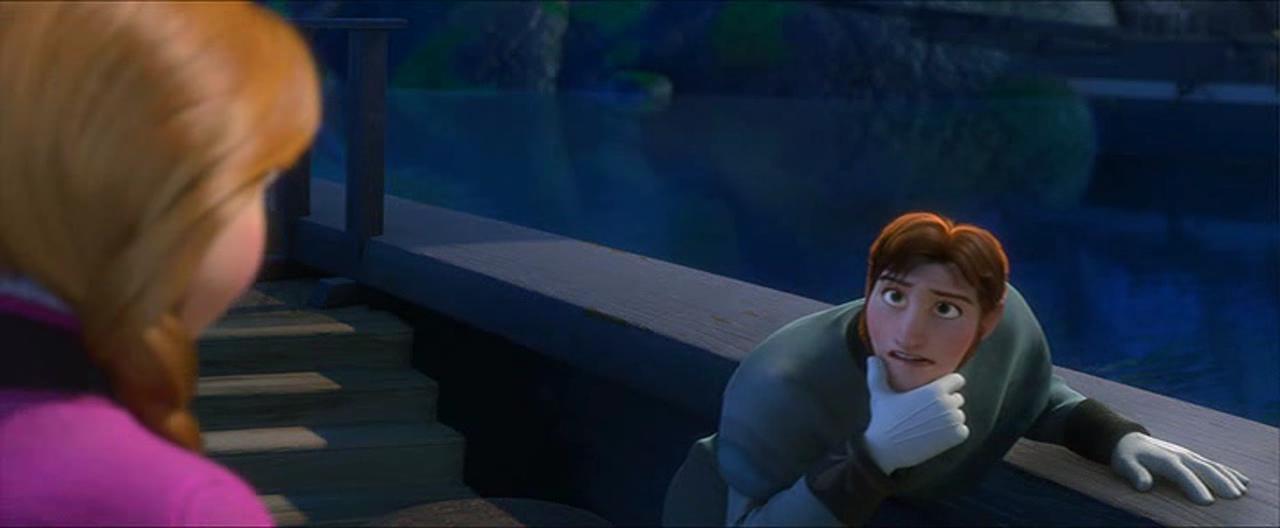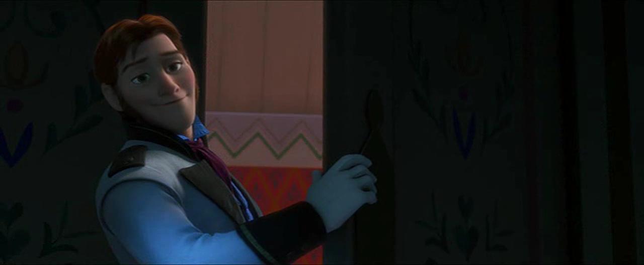 他試著想從艾莎口中探聽解除冰封的方法.而且或多或少也想增加艾莎的好感