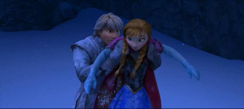看到安娜被困在雪中.阿克還很貼心的將她從雪裡扶起來