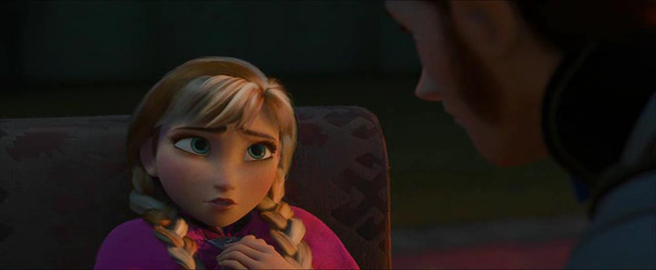 聽到要真愛的行為才能消除冰.又見到安娜痛苦的模樣