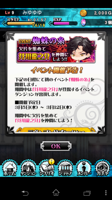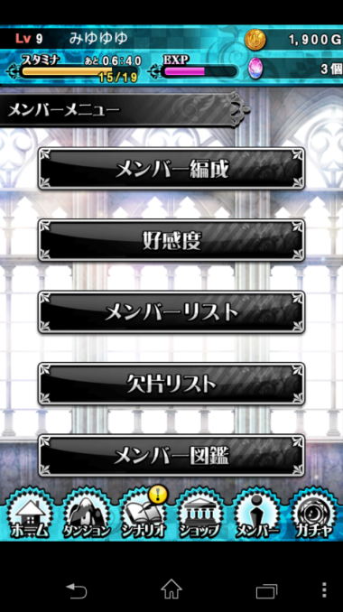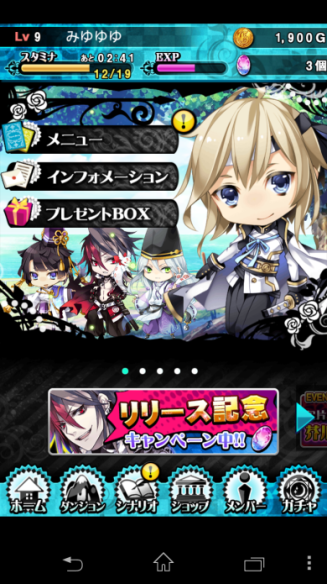 HOME、關卡、劇情、商店、成員、轉蛋