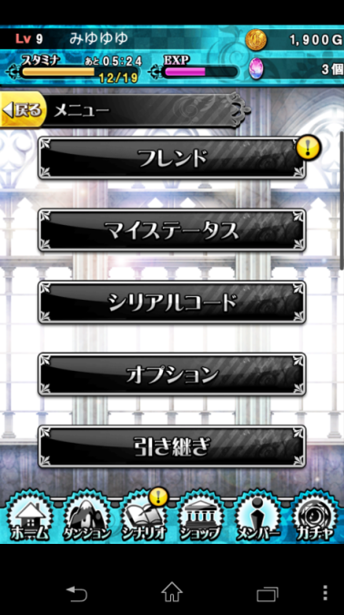 好友:好友一覽、好友ID尋找、好友確認、好友招待(自己的招待碼於此,別人的招待碼也在這輸入)