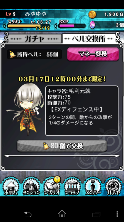 2.用1000G來交換1Bell(右上方的マナー変換)