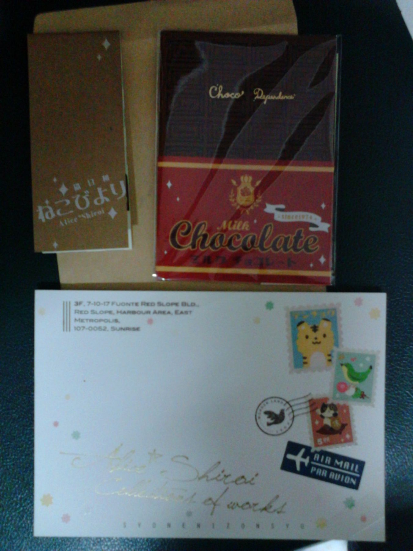左上是貓咪全採圖文迷你小書:貓日和,右上是筆記本:Choco Dependence 巧克力筆記本,下面是插畫本:Alice*Shiroi個人作品集。