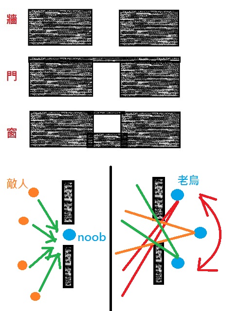搜尋那些地形,不要貼著門使用側偏頭.因為 受敵面會很大..