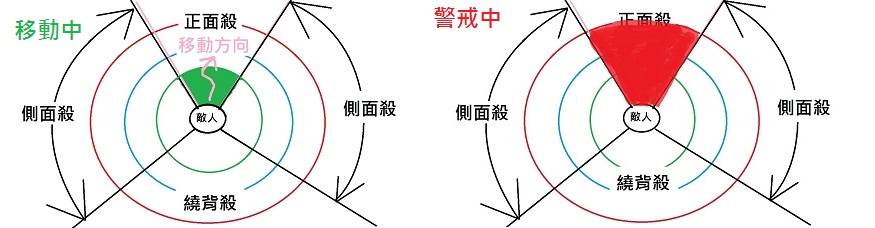 c.繞背殺: 角度更大的側面殺.敵人就算隊友也幾乎難以察覺.