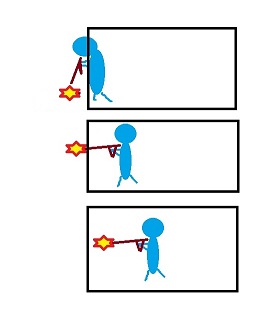 走---> [停] --> 瞄準+專注 -->走 --> [停] -->瞄準+專注