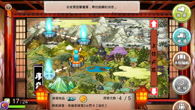 玩家們跟著四位主角在「探索」模式中體驗遊戲故事的同時,也能隨著進度解鎖另外的主線劇情模式,除了更加了解這個遭魔軍入侵而崩壞的三國世界外,還能獲得扭蛋券、商城幣等高價值的寶物,請務必記得通關。