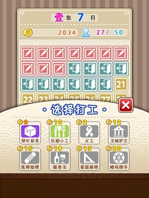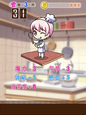 選擇打工內容,不同工作的可獲得的工資不同 擔任廚房助理的成果,不過魔力跟氣質也因此降低了