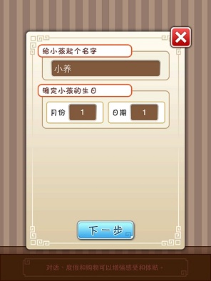 一開始要幫女孩取名字,以及決定她的生日,這部分應該沒有影響到數值,所以依照自己的喜好即可。然後也可以對「扶養者」也就是自己來做設定,這邊比較特別的地方是可以選擇性別,不像大多數養女孩的遊戲都預設扶養者是男性……