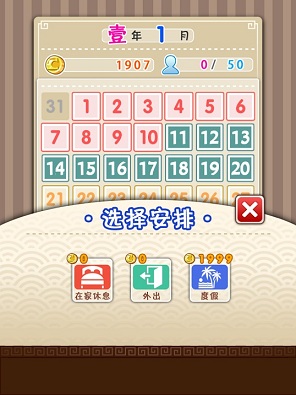 遊戲起始畫面 透過主介面安排女孩的大小事(最下方是廣告,已塗掉)
